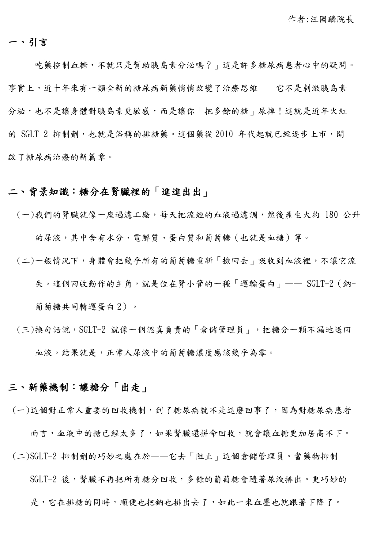 糖尿病新藥大揭密:原來可以「尿糖」來降血糖!