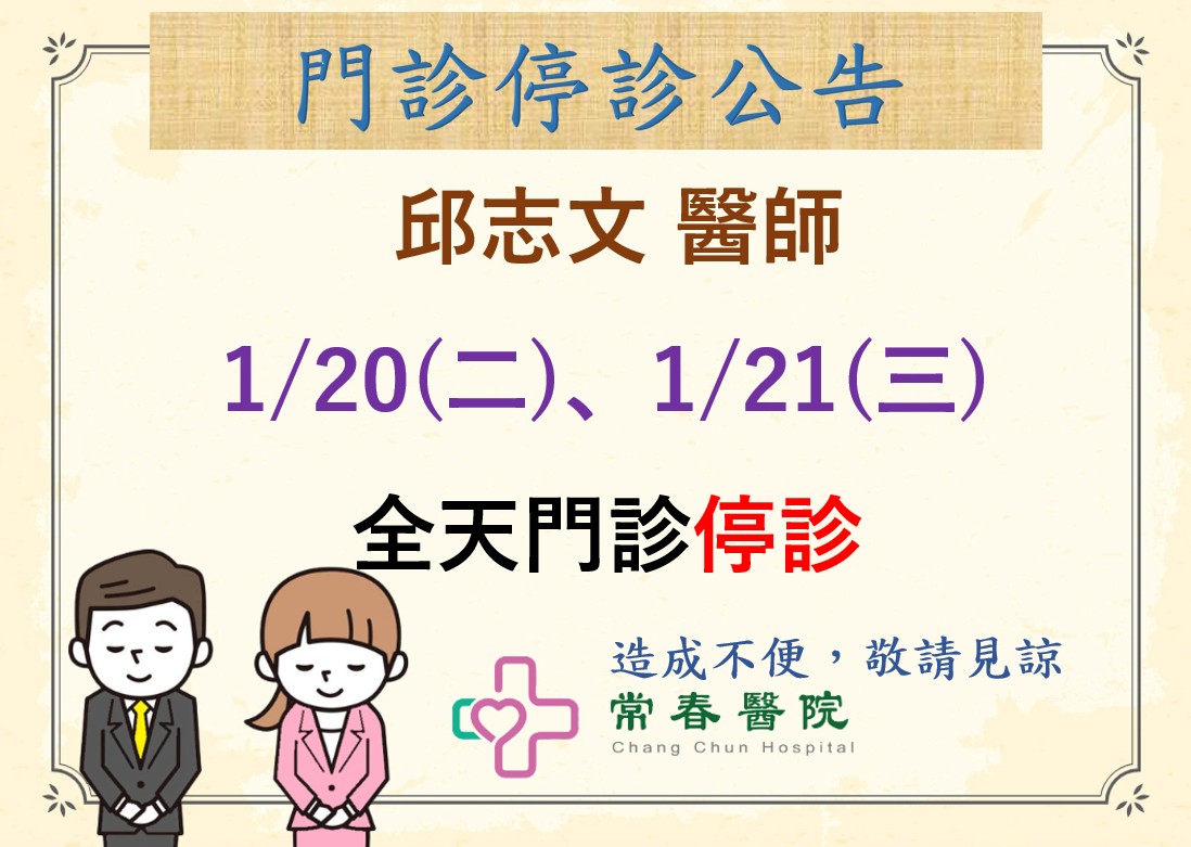 邱志文醫師115-01-20(W2)~21(W3)全天門診停診